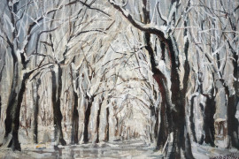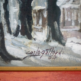 Paesaggio invernale, olio su tela, cm 40x50, firmato, entro cornice