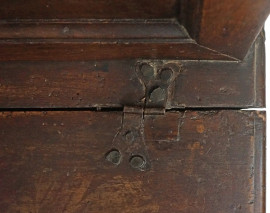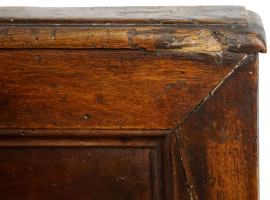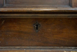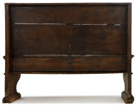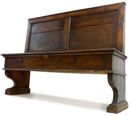 Panchetta in noce, XVIII secolo, schienale pannellato, sedute a ribalta, cm 104x140x44, (difetti, e restauri)