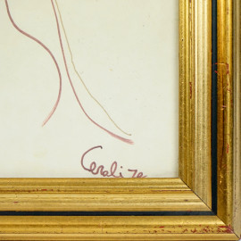 Profili, acquarello su carta, cm 29x39, firmato Ceroli, entro cornice.
