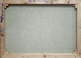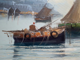 Scorcio marino con barche di pescatori, fine anni 60, olio su tela, cm 50x70, firmato