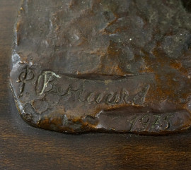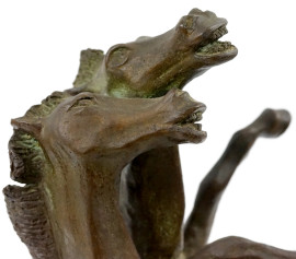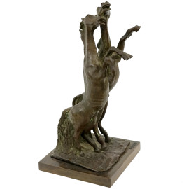 Scultura in bronzo rappresentante due cavalli rampanti, base in legno, firmata e datata R. Bernard 1975, altezza cm 51,5