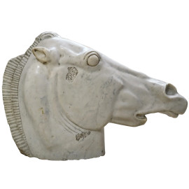 Scultura in marmo rappresentante la testa di un cavallo, XX secolo, altezza cm 60