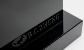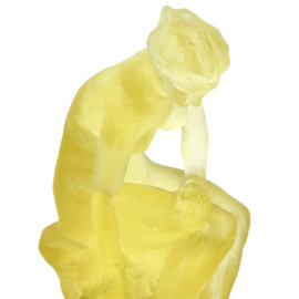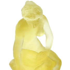 Scultura in vetro giallo rappresentante una figura femminile, piedistallo in marmo nero, firmato B.C. Zheng, XX secolo, cm 20, (difetti)