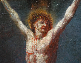 Scuola italiana del XVII secolo, Crocifissione con Santa Maria Maddalena, olio su tela, cm 55x45,5, entro cornice