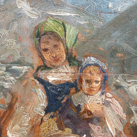 Artista italiano della prima metà del XX secolo, Discesa dalla montagna, olio su tavoletta, cm 26,5x28,4, entro cornice