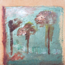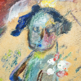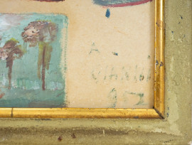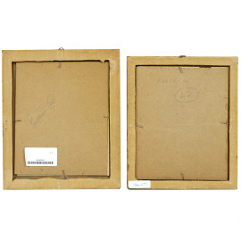 Attribuiti a Cesare Zavattini (Luzzara, 1902 – Roma, 1989), lotto di due dipinti a tecnica mista su carta, uno reca la firma Zavattini Roma e la dedica "a Gianni [Puccini] [1]952", cm 20x16,5 circa, entro cornice