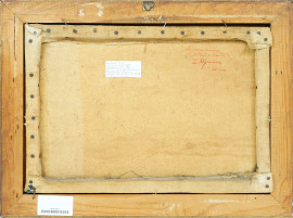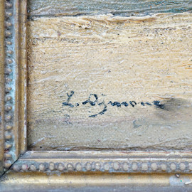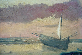 Barca in riva al mare, olio su tela, firmato in basso a sinistra, cm 27,8x39,5