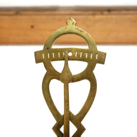 Bilancia da farmacista in ottone dorato, marmo e legno, entro teca in legno e vetro, inizio XX, cm 68x43,5x21 (mancanze)