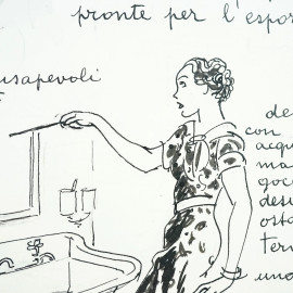 Le ingenue e "nazional popolari didascalie di un'epoca passata", china su carta, cm 34x26