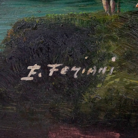 Capriccio con figure, olio su tavola, firmato, cm 44x73, entro cornice