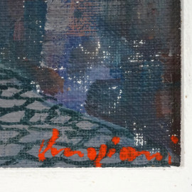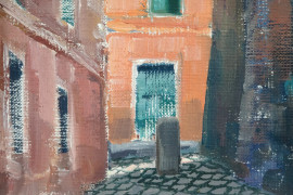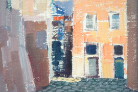 Coppia di scorci di paese, olio su cartone telato, cm 20x15,5, firmati Veneziani, entro cornice