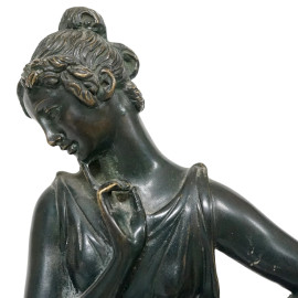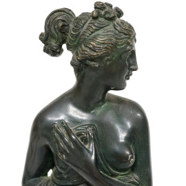 Coppia di sculture in bronzo rappresentanti la Venere Italica e la danzatrice di Antonio Canova, firmate Causse. Basi circolari in marmo, altezza massima cm 34.5