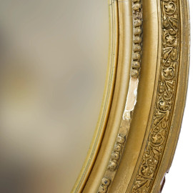 Coppia di specchiere ovali in legno e stucco dorato, XX secolo, cm 76x67 (difetti)