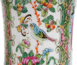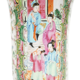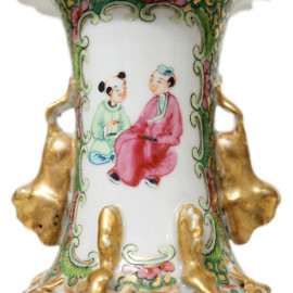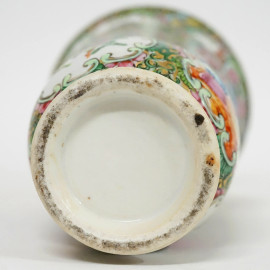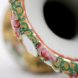Coppia di vasi cinesi Canton in porcellana policroma con finiture dorate, fine XIX secolo inizio XX secolo, altezza cm 25,5 (difetti)