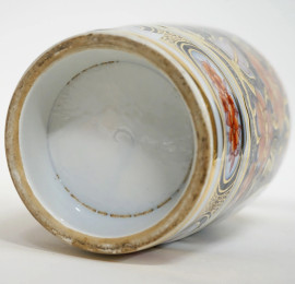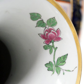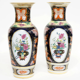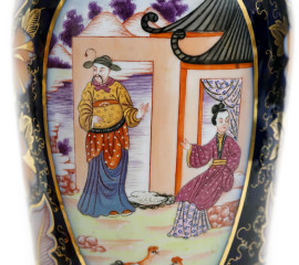 Coppia di vasi cinesi in porcellana policroma e finiture dorate, XX secolo, altezza cm 37