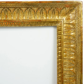 Cornice a guantiera siciliana in legno e stucco dorato, XIX secolo, ingombro cm 49,5x61,6, battente cm 36,9x48,8