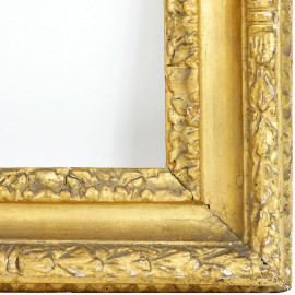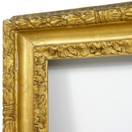 Cornice romana del XVII secolo in legno intagliato e dorato, ingombro cm 46x54,5, battente cm 32x41,5 (difetti)
