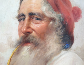 Eduardo Forlenza (1861-1934), Ritratto del pescatore caprese Francesco Spadaro, olio su tela, firmato in basso a destra Forlenza, cm 40,4x25,2, entro cornice
