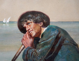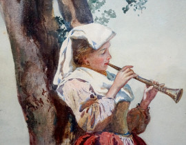 Enrico Nardi (1864-1947), Popolana con pastore, acquarello su carta, cm 55,5x38,5, entro cornice