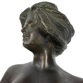 Estasi, busto in bronzo brunito da un modello di Giuseppe Renda, firmato al retro, base in marmo bianco, cm h 16.
