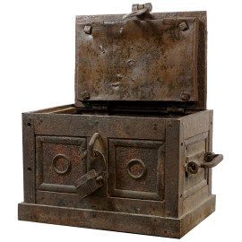 Forziere in ferro, XVIII secolo, cm 36x42x56,5
