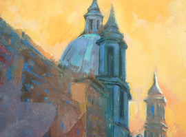 Piazza Navona al tramonto, olio su tela, cm 30x39, entro cornice