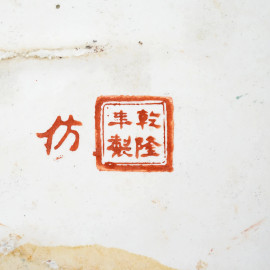 Gatto in porcellana decorata in policromia, arte orientale, XX secolo, cm h 15x32x18