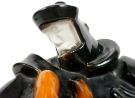 il cavaliere e la principessa, scultura in ceramica policroma, cm h 31, firmata Al Gaudenzi, M. G. Albisola, (difetti)