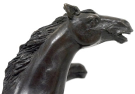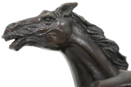 Gruppo in bronzo raffigurante due cavalli rampanti, su base in marmo, cm 30x21,5x18 (difetti)