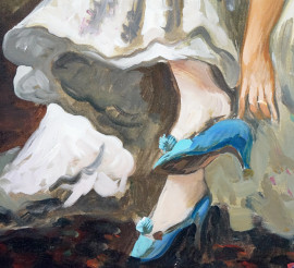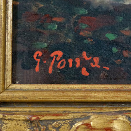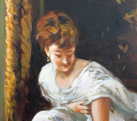 Interno con figura femminile, olio su tela, firmato, cm 50x40, entro cornice