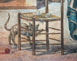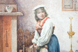 Interno con popolana, acquarello su carta, firmato, cm 48x38, entro cornice