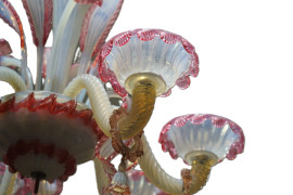 Lampadario in vetro di Murano a sei luci, XX secolo, cm h 75