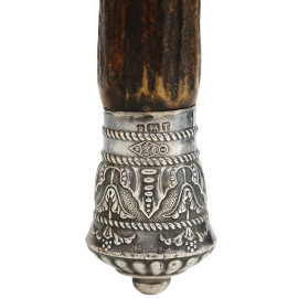 Lotto composto da una pinza per salumi e un raccoglibriciole in metallo argentato con finiture in argento, recante punzoni, Inghilterra, XX secolo, misura max cm 33 (difetti)