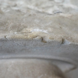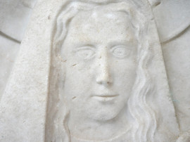 Madonna in preghiera, bassorilievo in marmo bianco, XX secolo, cm 28x25x9,5, (difetti)