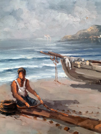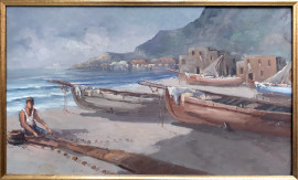 Marina a Posillipo, Maestro dei primi del Novecento, olio su tavola, cm 30x50, firmato, con cornice