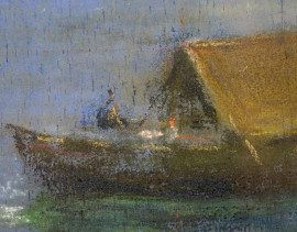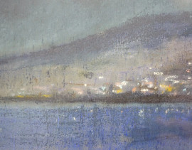 Marina notturna, pastelli su compensato, firmato, cm 46,5x57, entro cornice