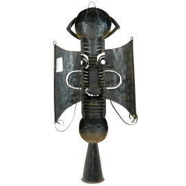 Maschera tribale in metallo con tracce di colore verde, XX secolo, cm 71x33