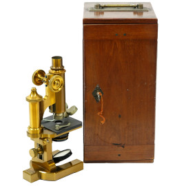 Microscopio in cassetta, F. Korista, Milano, inizi XX secolo, misure della custodia cm 35x18.5x16.5, (difetti)