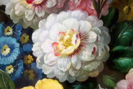 Natura morta con vaso di fiori, olio su tela, XX secolo, cm 120x90, entro cornice