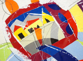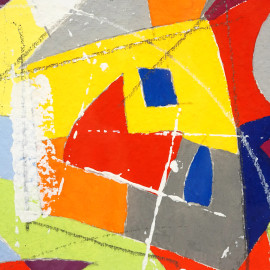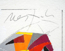 Composizione astratta, tecnica mista su carta, firmato in alto a destra, cm 53x71,5, entro cornice