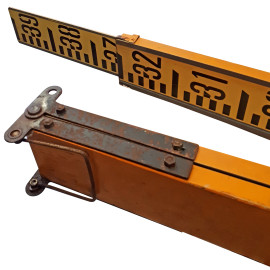 Oggetto per arredo industrial, antica stadia (o mira) metrica graduata telescopica vintage pieghevole in legno, utile per misurazioni topografiche e mira per teodolite, per la misura dei dislivelli del terreno, misura circa 4 metri