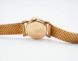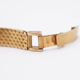 Orologio da polso da donna in oro 18 KT, quadrante circolare cm 1,8, lunghezza cm 18, peso totale gr. 26.9 (meccanismo da revisionare)