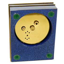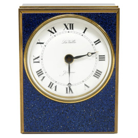 Orologio da tavolo a quarzo La Vallée in lapislazzulo e metallo dorato, entro scatola 4x9,3x7 (meccanismo da revisionare)