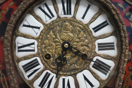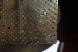 Orologio stile Boulle in legno intarsiato a finta tartaruga e metallo, Germania, XX secolo, altezza cm 60, (da revisionare)