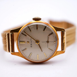 Orologio Zenith da donna in oro 18 KT, quadrante diamentro cm 2,2, lunghezza cm 18, peso totale gr. 30.8 (meccanismo da revisionare)