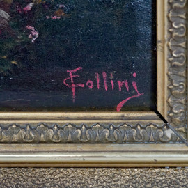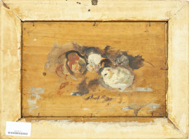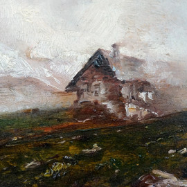 Paesaggio con baita, olio su tavola, firmato, cm 21,5x33, entro cornice