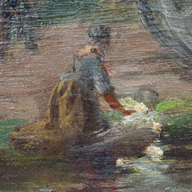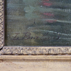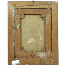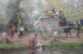 Paesaggio con carro e figure, olio su tela, fine XIX secolo, cm 40x30, entro cornice