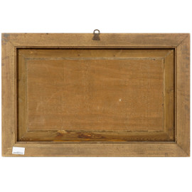 Paesaggio con figure, olio su tavola, firmato, cm 44x73, entro cornice