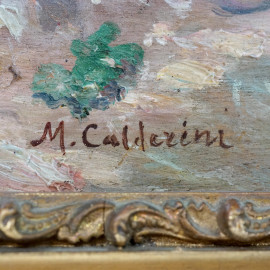 Paesaggio fluviale, olio su tavola, firmato, cm 18,5x31,5, entro cornice