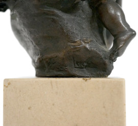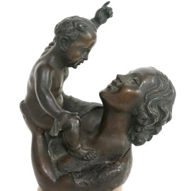 Piccola scultura in bronzo raffigurante la maternità, piedistallo in marmo, firmata F. de Luca, altezza cm 19,5